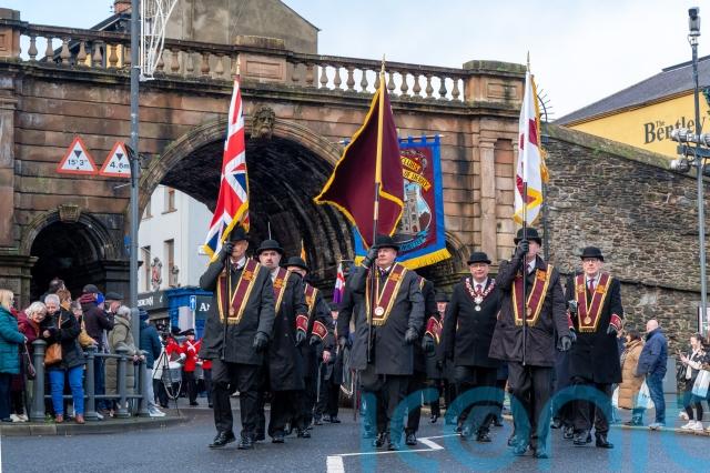 Apprentice Boys accompanied by musical bands paraded in Derry for a service of thanksgiving in St Columb’s Cathedral.