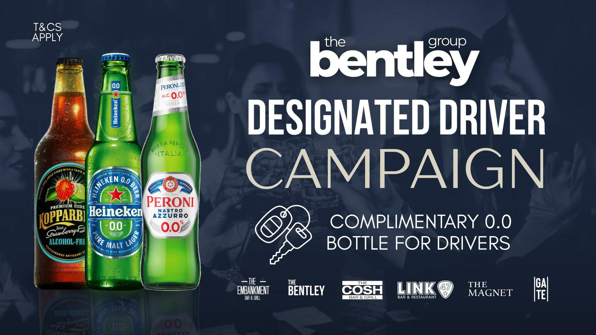 The Bentley Group has launched a new designated driver campaign across all of its venues, offering a complimentary 0.0 alcohol-free bottle to drivers – not just over the festive period, but all year round.