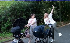 Mums Jenny Beveridge and Cathy Burke enjoying the One Big Walk in the Park for World Maternal Mental Health Day.