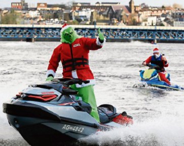 Thumbs up from the Grinch during the annual santa ski on the Foyle held on Sunday and organised by the Irish Jet Ski Club. (Photo - Tom Heaney, nwpresspics)