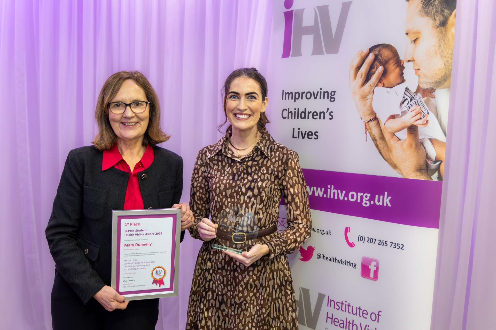 Northern Trust Health Visitor, Mary Donnelly, winner of the Specialist Community Public Health Nurse (SCPHN) Student Health Visitor Award, pictured with Alison Morton, Chief Executive of the Institute of Health Visiting.