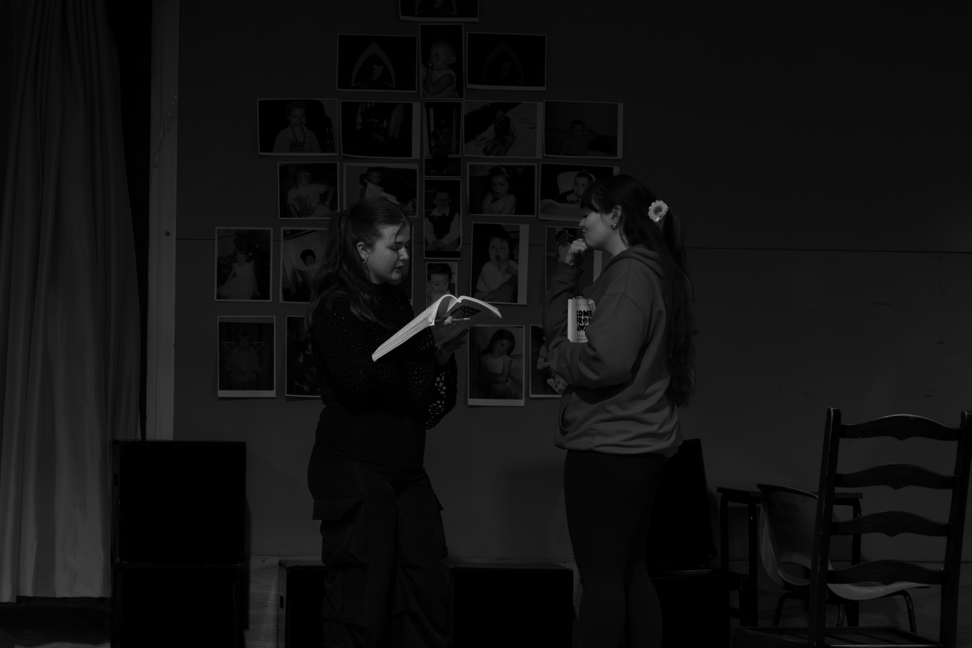 Cáit Ní Cheallaigh (Janice Mosher) and Sofia Stenstrand (Bonnie Harris) rehearsing for MTU Cork School of Music's production of 'Come From Away'. (Photograph: Leah O'Shea)
