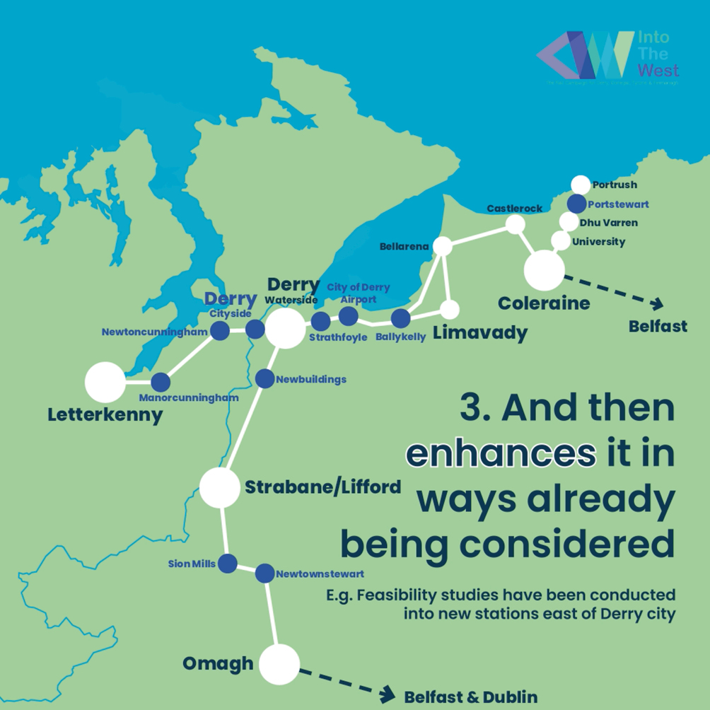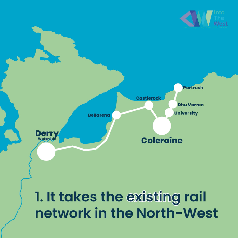 Into The West are promoting the Metro North-West concept as an essential solution to the challenges that Derry and other towns across this region are facing – such as poor connectivity, growing road congestion, economic underdevelopment and university expansion.