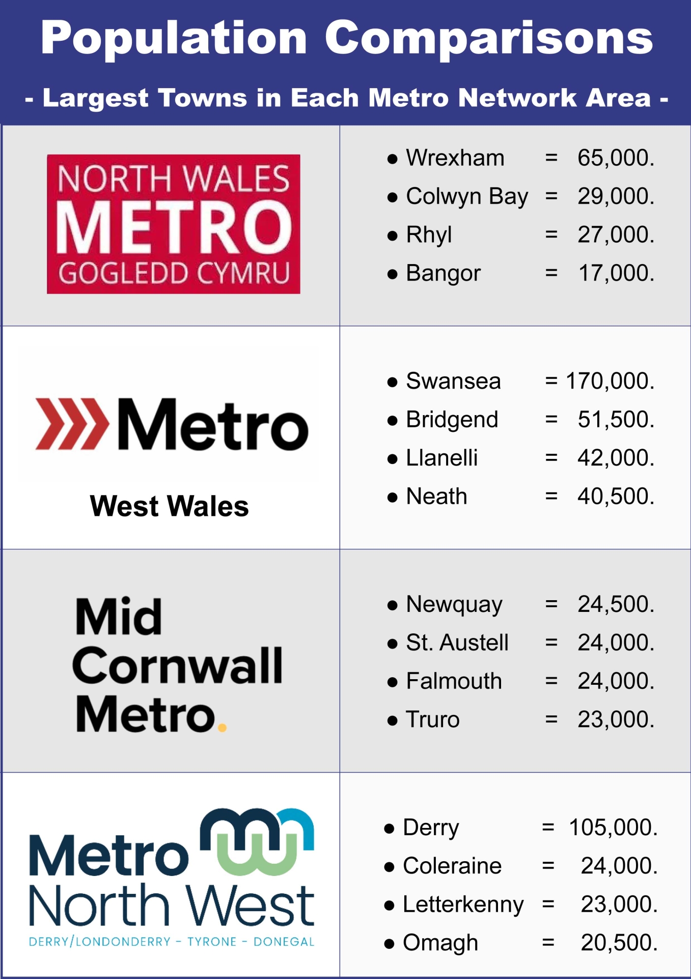 The largest town served by this new Mid-Cornwall Metro is Newquay, who’s population of 24,500 is almost identical to both Letterkenny and Coleraine.