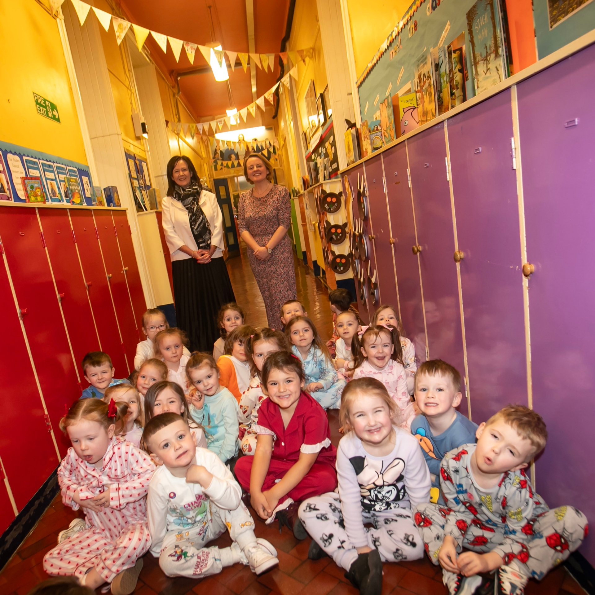 St. Anne's PS Principal Eilis McGuinness meets with some of the younger children during their World Book Day Celebrations when touring the Nazareth House school with Principal Roisin Blackery. (Photos: Jim McCafferty Photography)
