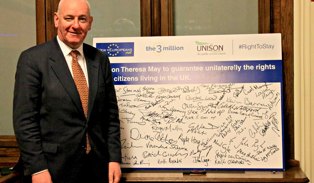 SDLP Foyle MP Mark Durkan has supported a mass lobby at Westminster this week organised by the3million.org.uk, UNISON and New Europeans in support of EU citizens’ ‘Right to Remain’ in the UK post-Brexit – including in Derry and throughout the North. Mr Durkan said: “I was proud to sign this pledge calling on Theresa May to guarantee unilaterally the rights of EU citizens living here. “MPs from six different parties signed the pledge, representing the widespread concern of parliamentarians on the issue. “I firmly believe that workers from across Europe play a vital role in our public services, especially in the NHS and social care. Indeed, these services would not be able to survive without them. “Some of these workers are also long existing residents – and therefore they and their families deserve better than years of uncertainty and being reduced to bargaining chips in the upcoming Brexit negotiations. “Theresa May must therefore reconsider her stance on this important issue and unilaterally grant the ‘Right to Remain’ for EU citizens before the process of negotiations begins.”