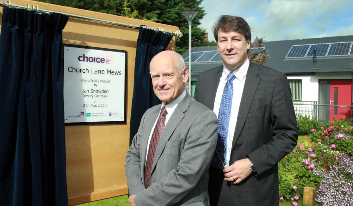 A new supported living service by Choice Housing Ireland has officially opened in Magherafelt. Choice are proud to announce the official opening, which took place on Monday, in partnership with the Northern Health and Social Care Trust. Choice have invested £1.3 million on the provision of the purpose built supported living service which includes 14 single occupancy bungalows within walking distance of Magherafelt town. The scheme aims to support people to achieve their maximum level of independence. The residents are individuals who have experienced severe and enduring mental health issues and require a fairly high level of support. Social inclusion and re-integration into the community are key objectives and facilitated by a skilled workforce at the scheme including an Occupational Therapist, a Social Worker and Senior Support Workers working closely with families and carers. The new bungalows are a result of positive inter-departmental collaborative working between Choice, the Department for Social Development (DSD), Northern Health and Social Care Trust and the Supporting People team within the Housing Executive. Timothy Quin, Chair of Choice Housing Ireland said: “Choice are delighted to announce the official opening of this newly built housing scheme which was shortlisted at last year’s Chartered Institute of Housing awards for ‘Sustainable Development of the Year’, for its well thought out design and the dwellings being built in a quiet rural setting, yet within walking distance of the town. “Choice have worked in close partnership with a number of other organisation in building new homes for our tenants to live independently within high quality accommodation, in an area that is safe and serene, but still very much part of the community in Magherafelt. “We would like to thank all those involved in setting up this housing project and we wish our tenants every success and happy years ahead in their new homes,” added Mr Quin. Welcoming the new scheme, Social Development Minister, Mervyn Storey MLA, who was represented at the event by Ian Snowden said: “Church Lane Mews has been purpose built to support residents who have experienced severe and enduring mental health issues, providing them with the support they need to achieve their maximum level of independence. Instead of hospital living, 14 residents now have their own private space behind their own front door. The Department for Social Development is pleased to have been able to support and fund this transition to a better way of living. I wish all the residents well for the future in their new accommodation.”