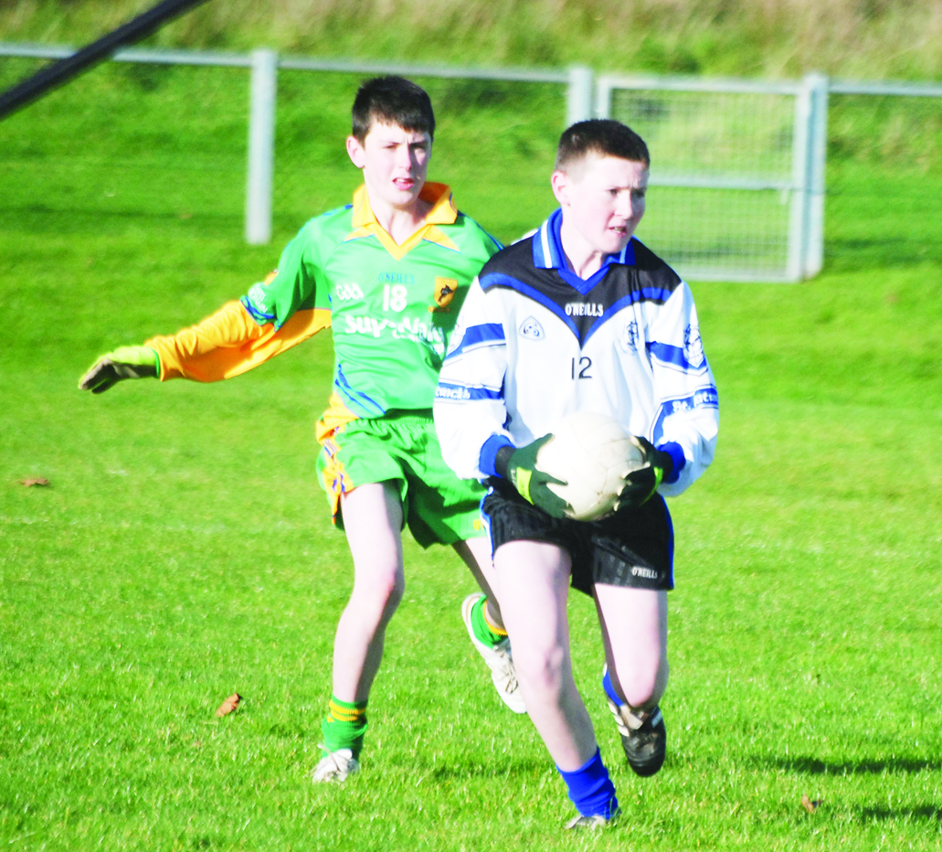 Jack Doherty in action against Coláiste Inis Eoghan in the Corn na nÓg