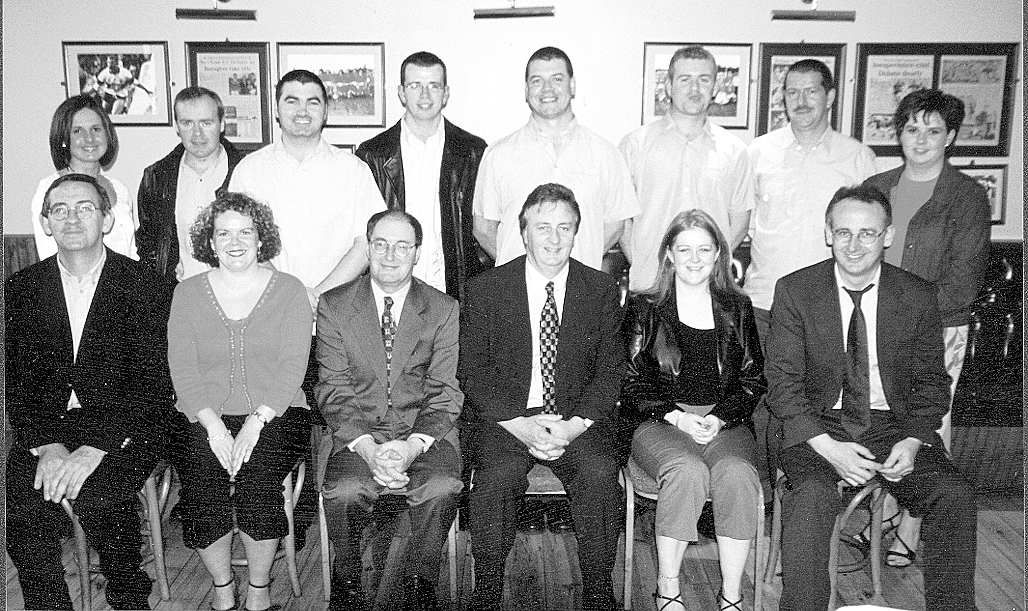 A group of employees from Seagate "A Shift" receiving their certificates at the Creggan Partnership presentation. Front row from left Martin Gallagher, Project Manager Creggan Community Partnership, Anne Marie Dorrity, Development Officer, Martin Quigg, Partnership, Callum Morrison, Deputy Director N.W.I.F.H.E, Janice McQuilkin, I.T. Department, and Gerald Gallagher, Community Outreach Officer.