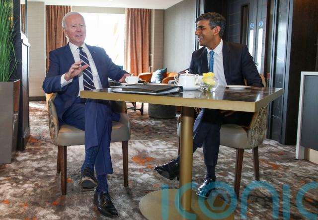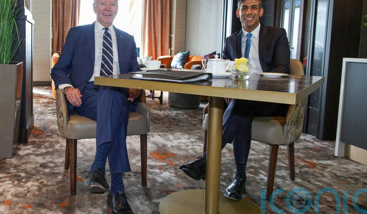 In Belfast, Mr Biden said he was there to “listen” as he had a cup of tea with Prime Minister Rishi Sunak.