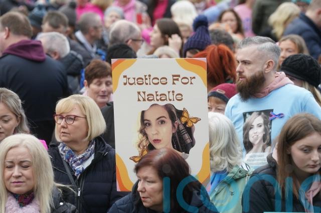 Many of those in attendance carried placards reading: “Justice for Natalie”, and: “She was only at home”, while a number wore pink or blue items of clothing in memory of the mother-to-be.