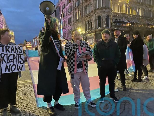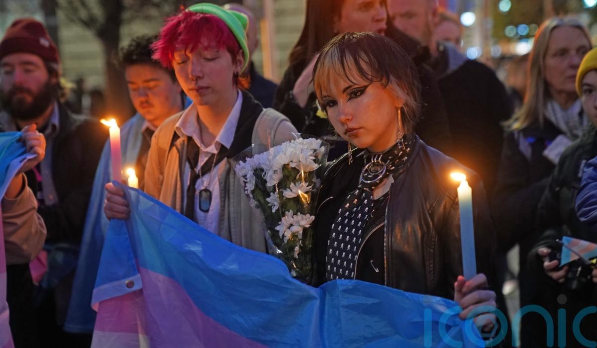 Protesters carried placards reading “Rest in Power” and “Trans Rights Now”.