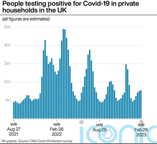 An estimated 1.6 million people in private households in the UK were likely to have Covid-19 in the week ending February 28, up 3% from 1.5 million the previous week, according to the Office for National Statistics (ONS).