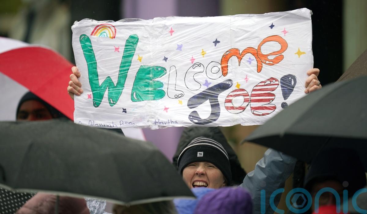 In Dundalk, members of the public in ponchos and raincoats had been waiting to greet the US president with a sign reading “Dundalk welcomes President Biden” hung above Clanbrassil Street.