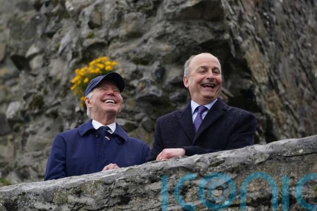 The president was accompanied by Tanaiste Micheal Martin as he toured St John’s castle, which offers a view of Carlingford Lough where Mr Biden’s great-great grandfather Owen Finnegan left via Newry port during the Irish famine in 1849 for a new life in the United States.