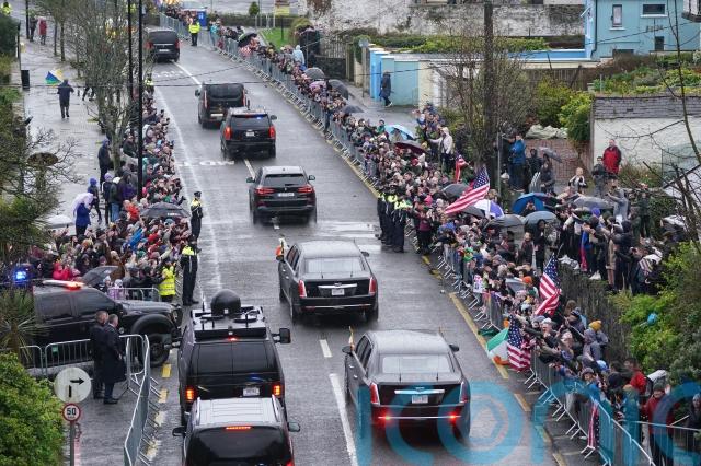 People lined the streets in Carlingford and Dundalk in Co Louth to cheer and wave American flags as Mr Biden arrived.