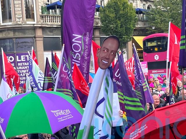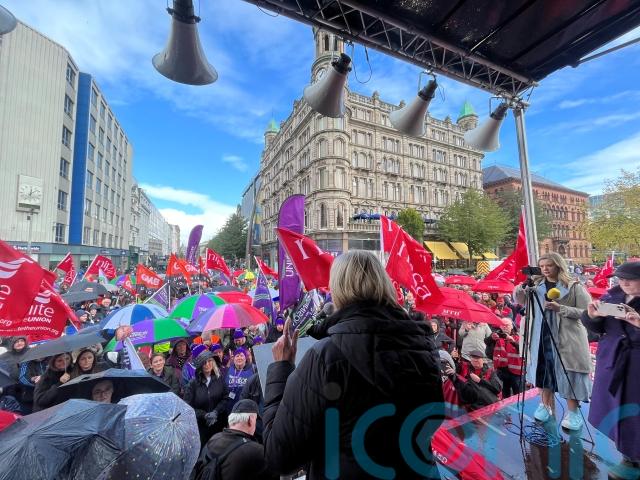 Paddy Mackel, from the Belfast Trades Council, told the crowds at City Hall that the underfunding of public services was a deliberate choice by the Government.