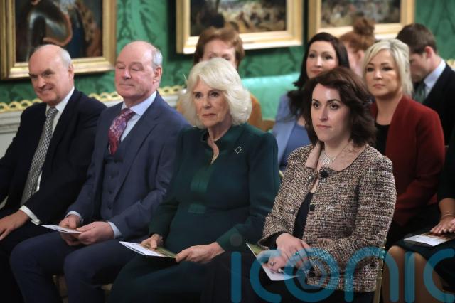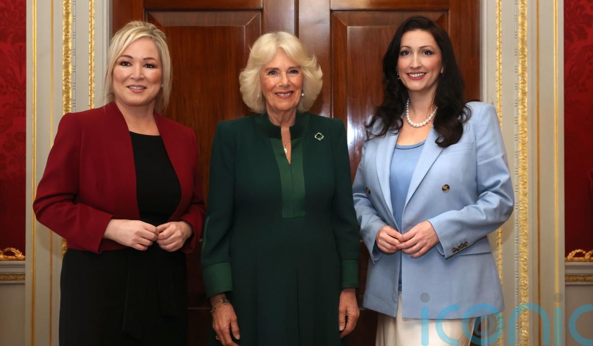 Camilla met First Minister Michelle O’Neill and deputy First Minister Emma Little-Pengelly during an event at Hillsborough Castle.