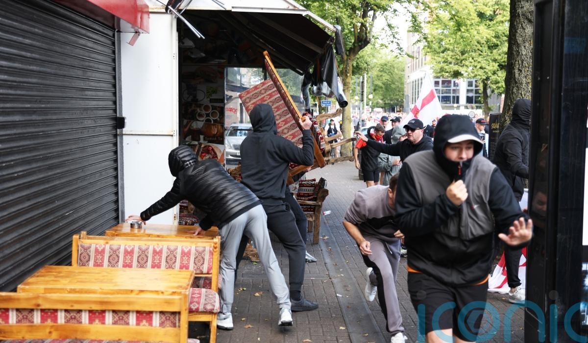 The violence on Saturday night followed unrest earlier in the day after businesses were attacked when an anti-immigration protest moved through the city.