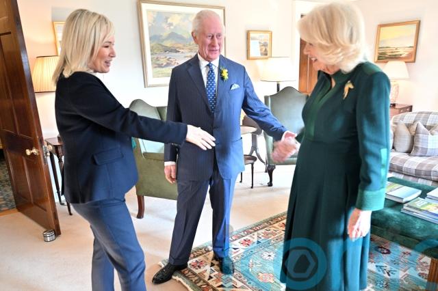 Later in the afternoon, the King and Queen held private audiences with Sinn Fein First Minister Michelle O’Neill and, separately, with DUP deputy First Minister Emma Little-Pengelly at Hillsborough Castle.