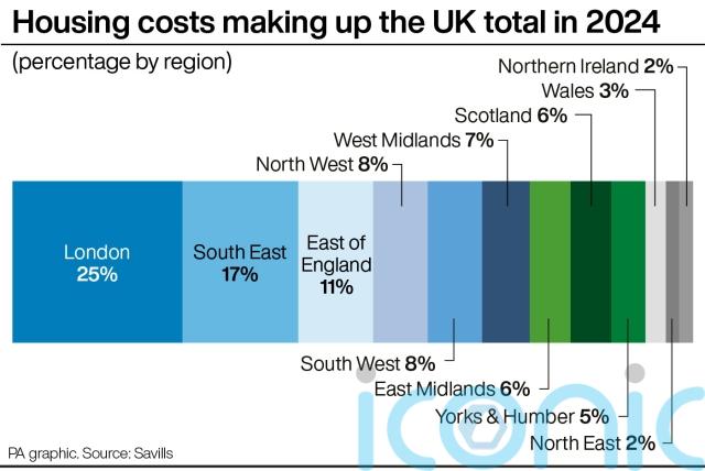 Percentages of total housing costs making up the UK total in 2024, according to Savills: