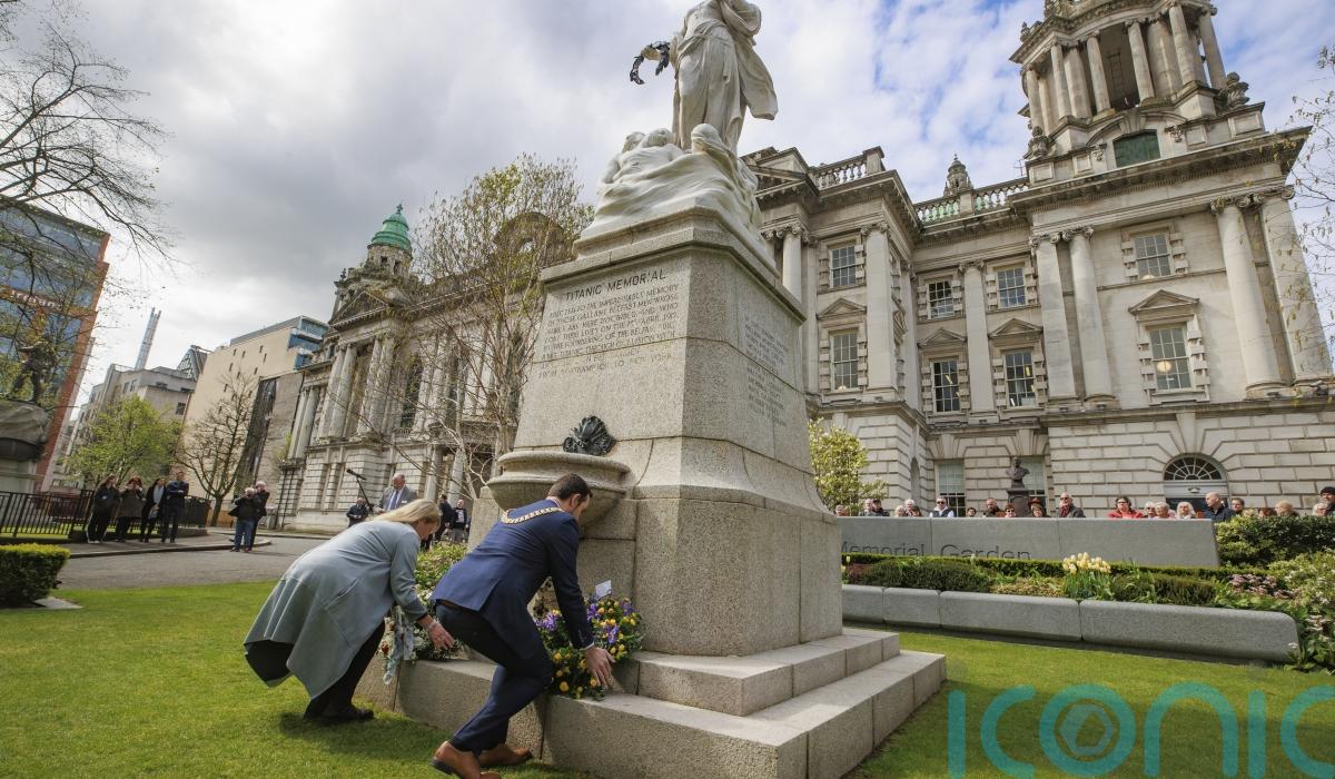 Lord mayor Micky Murray led the service attended by members of Belfast Titanic Society for the tragic end of the ill-fated liner which was built in Northern Ireland’s capital last century.
