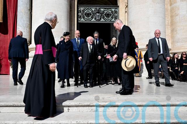 President Michael D Higgins led the Irish delegation by attending the mass for the late pontiff with his wife Sabina Higgins, having also viewed Francis’s remains during his lying in state on Friday.