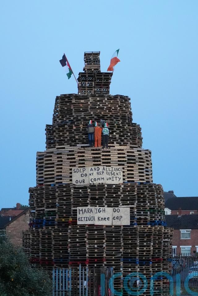Effigies of the Irish rap group Kneecap topped a different bonfire in south Belfast, while there was condemnation at the placing of Irish flags and sectarian slogans on other pyres in loyalist neighbourhoods.