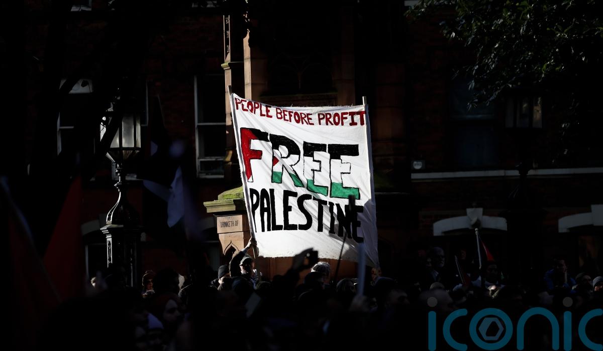 In Belfast, videos shared online show a woman wearing a Palestine Action T-shirt being told by police officers she was being arrested on suspicion of “possessing an article, namely a sign or T-shirt, that indicates support for Palestine Action”.