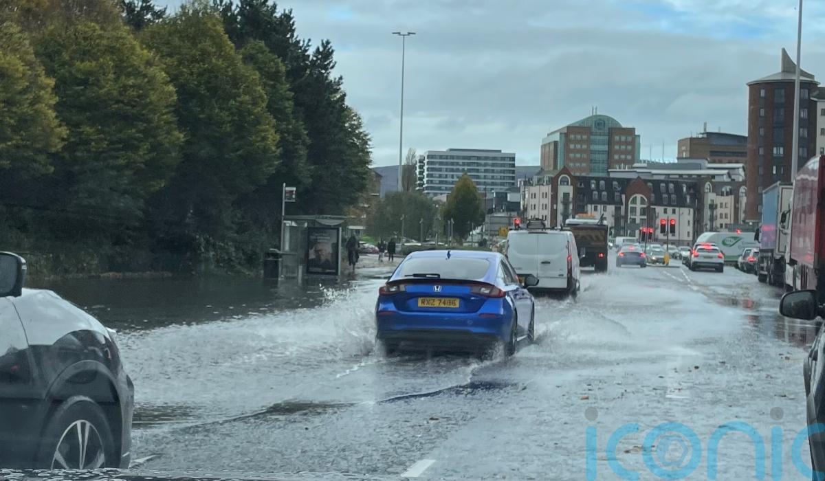 The Northern Ireland capital was battered by downpours on Friday morning.