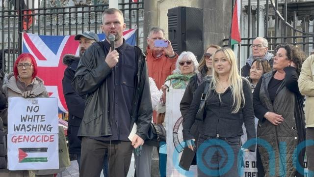 Protesters gathered outside Parliament Buildings on Monday morning ahead of the Assembly plenary calling for Mr Givan to step aside.