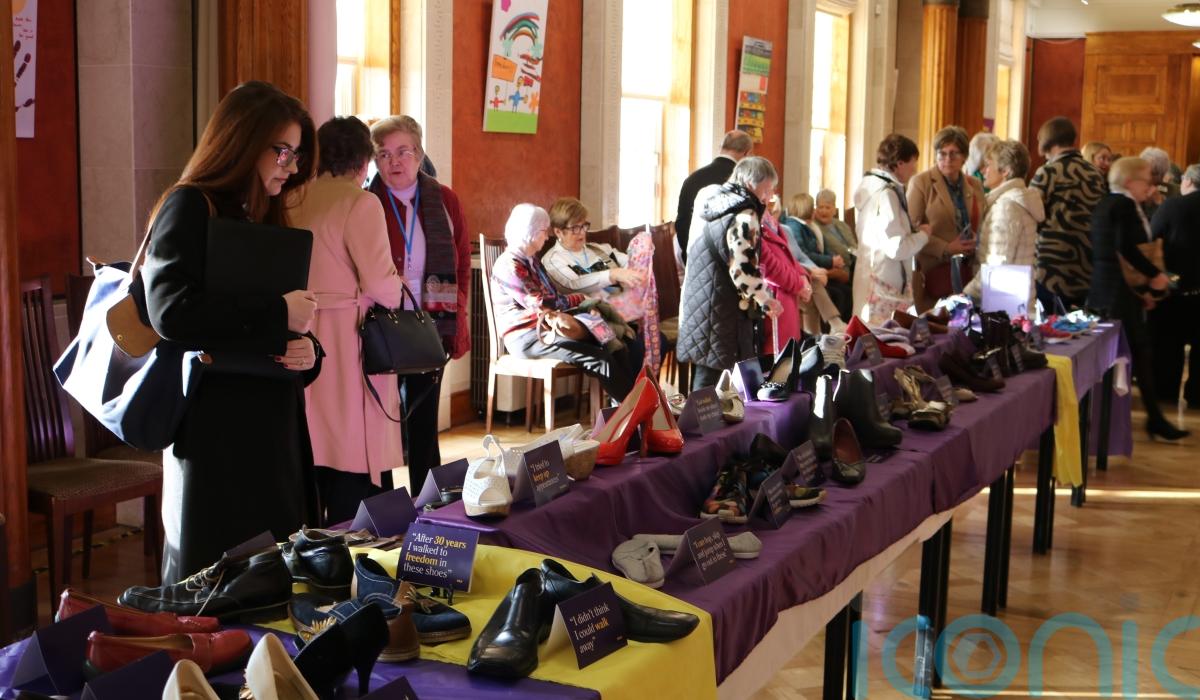 The Souls of Our Shoes exhibition, organised by the Mothers’ Union, featured the shoes of more than 50 domestic abuse survivors on display at Northern Ireland’s seat of government on Tuesday.