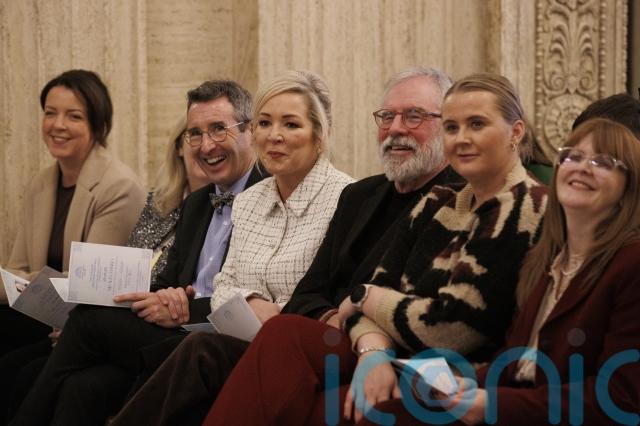 First Minister Michelle O’Neill and former Sinn Fein president Gerry Adams were among those who attended the unveiling of the portrait at Stormont on Tuesday.