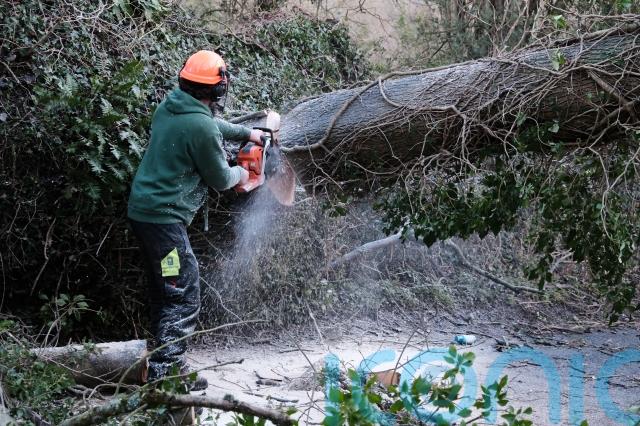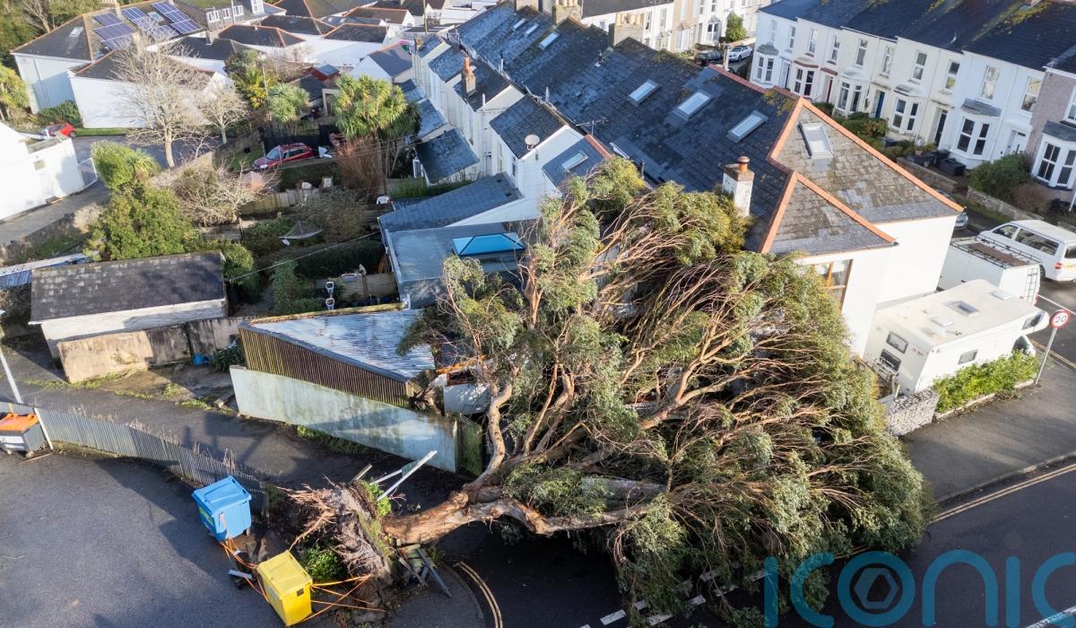 Residents on a tidal island near Cornwall woke to more than 80 trees brought down by Storm Goretti.