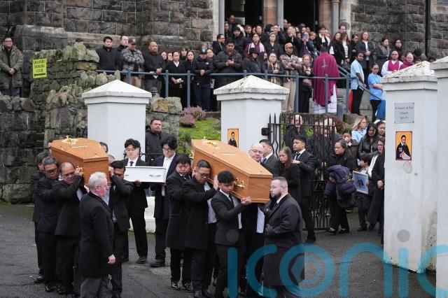 The couple’s funeral was held at St Vincent de Paul in Ligoniel, where a small white coffin for Kate was situated between her parents at the altar.
