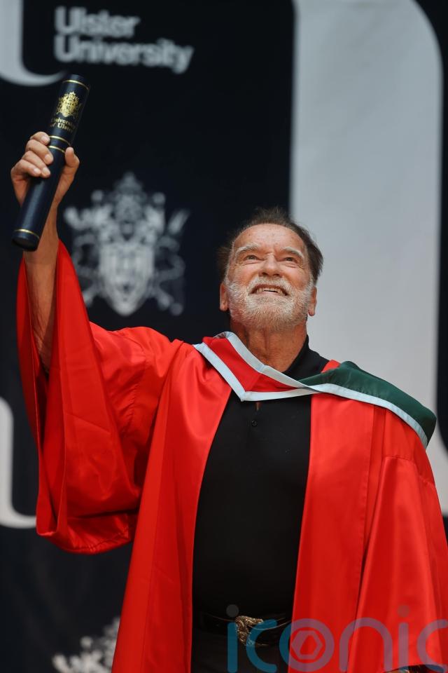 The Austrian-born star received the honorary doctorate from Ulster University in recognition of his contributions to public service, environmental advocacy, and the arts.