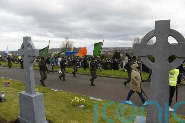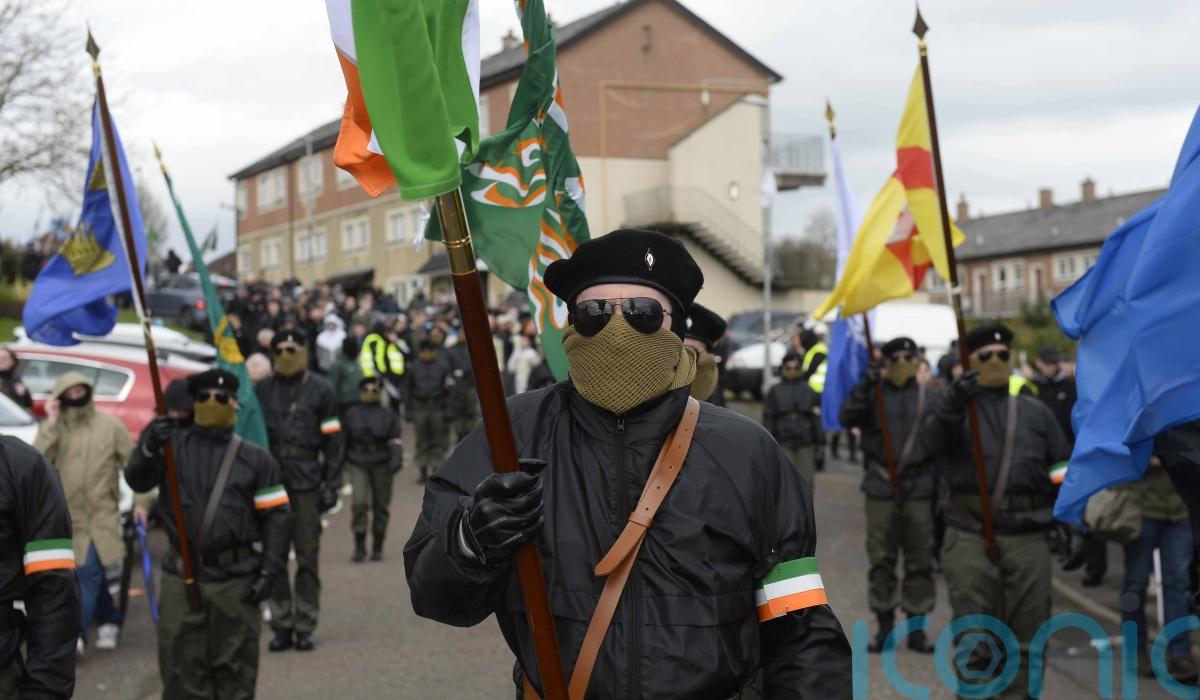 There was a colour party of people wearing face coverings, sunglasses and paramilitary-style dress, carrying the Irish flag and republican flags.