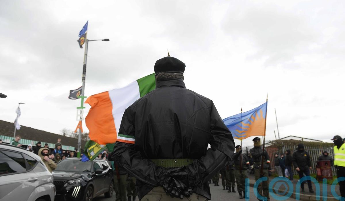 There was a colour party of people wearing face coverings, sunglasses and paramilitary-style dress, carrying the Irish flag and republican flags.