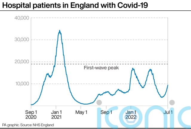 Some 9,389 patients in England had Covid-19 as of July 1, up 39% on the previous week, Government figures show.