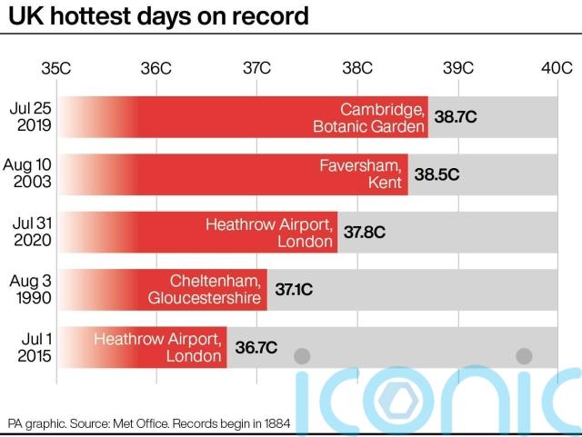 Weather forecasting models suggest it is possible – though not likely – temperatures could reach 40C in the UK next weekend, which would break the current British temperature record of 38.7C set in Cambridge in July 2019.