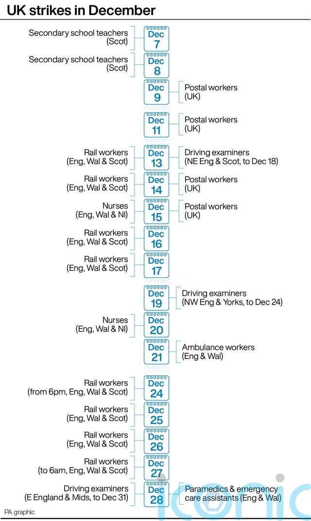 Strikes by workers across the country in disputes over pay, pensions, jobs and conditions are set to escalate in the weeks up to Christmas and into January.