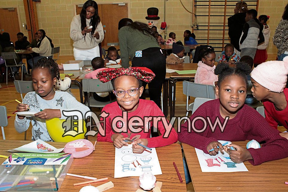 Children enjoying colouring their Christmas paintings.