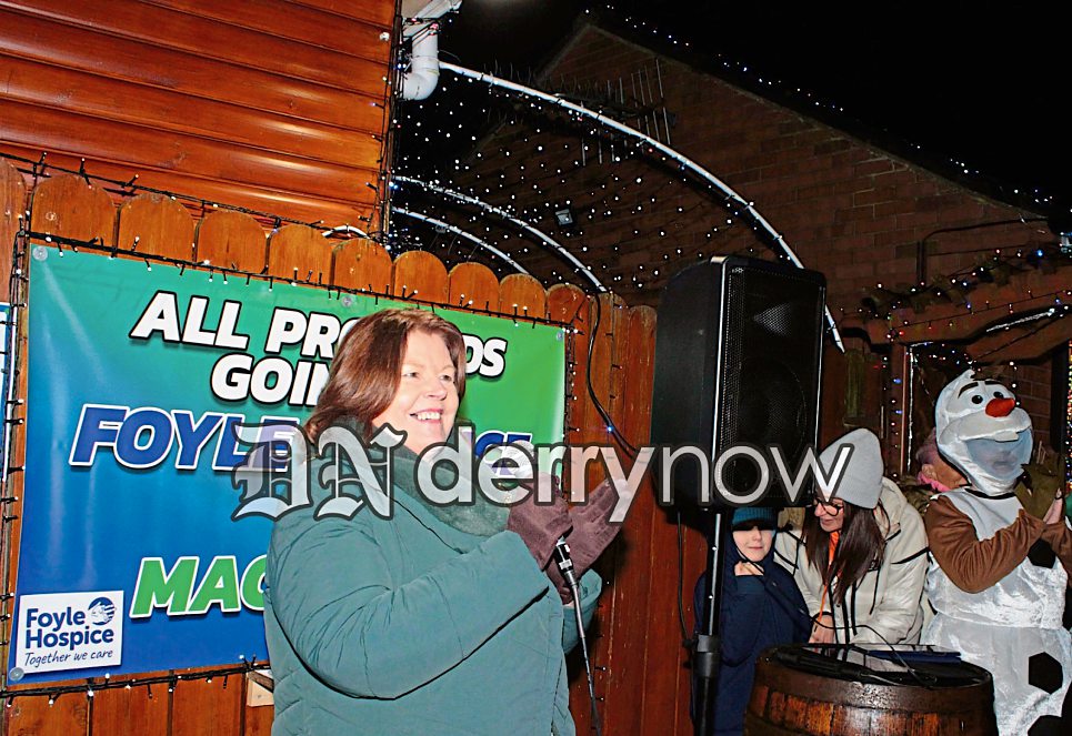 Mayor Patricia Logue switches on the Christmas lights at Amelia Court.