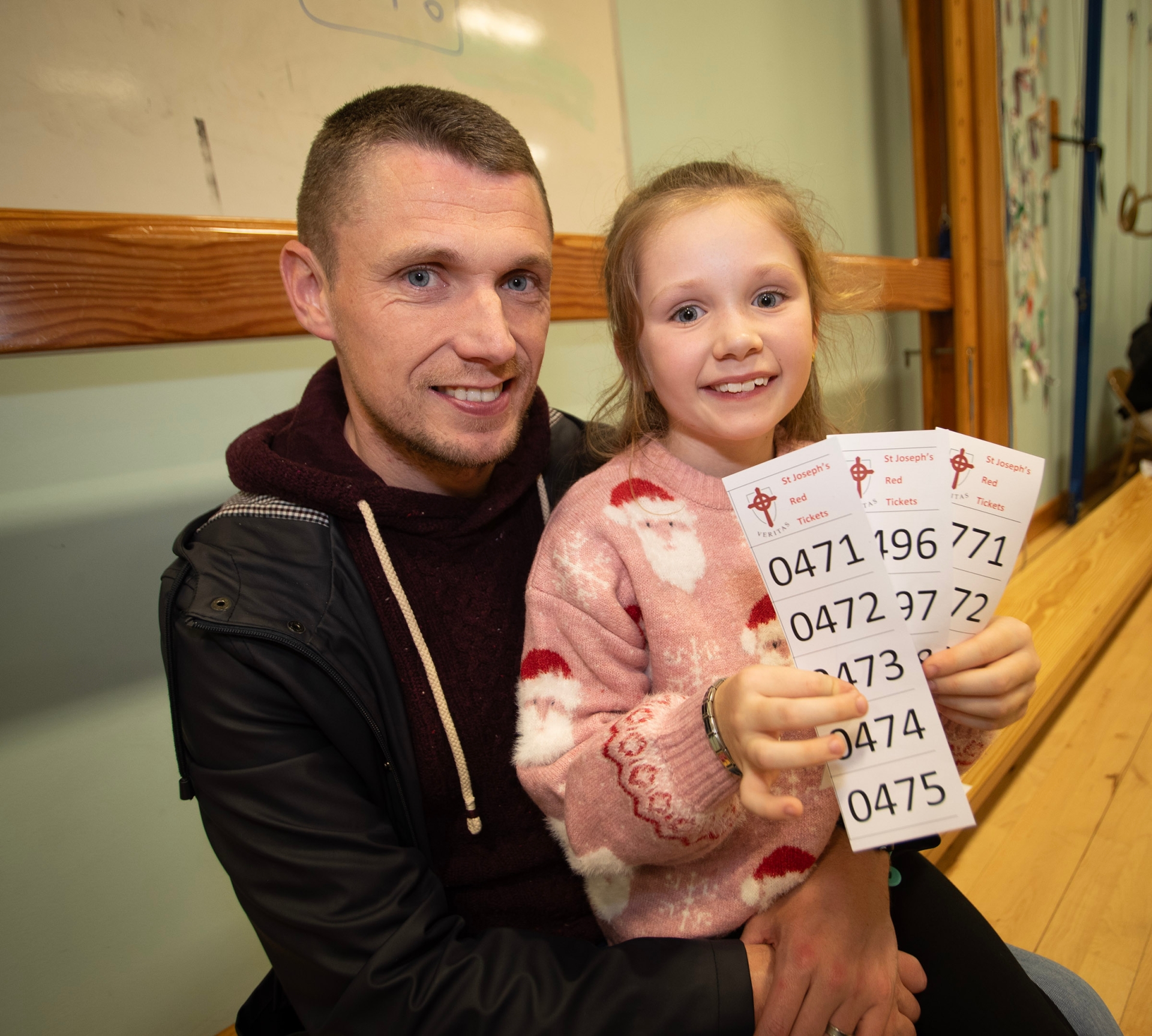 St. Joseph's Boys School teacher Emmett McGinty pictured with his daughter Layla at the school's Wheel of Fortune' on Thursday night.