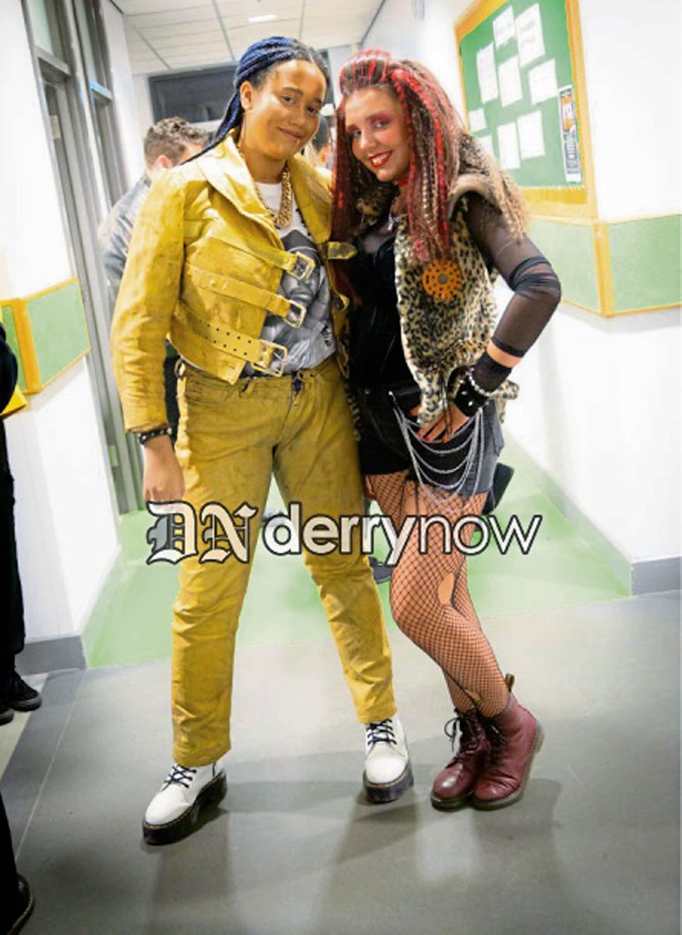 Cast members pictured before going on stage in St. Cecilia's College production of "We Will Rock You".
