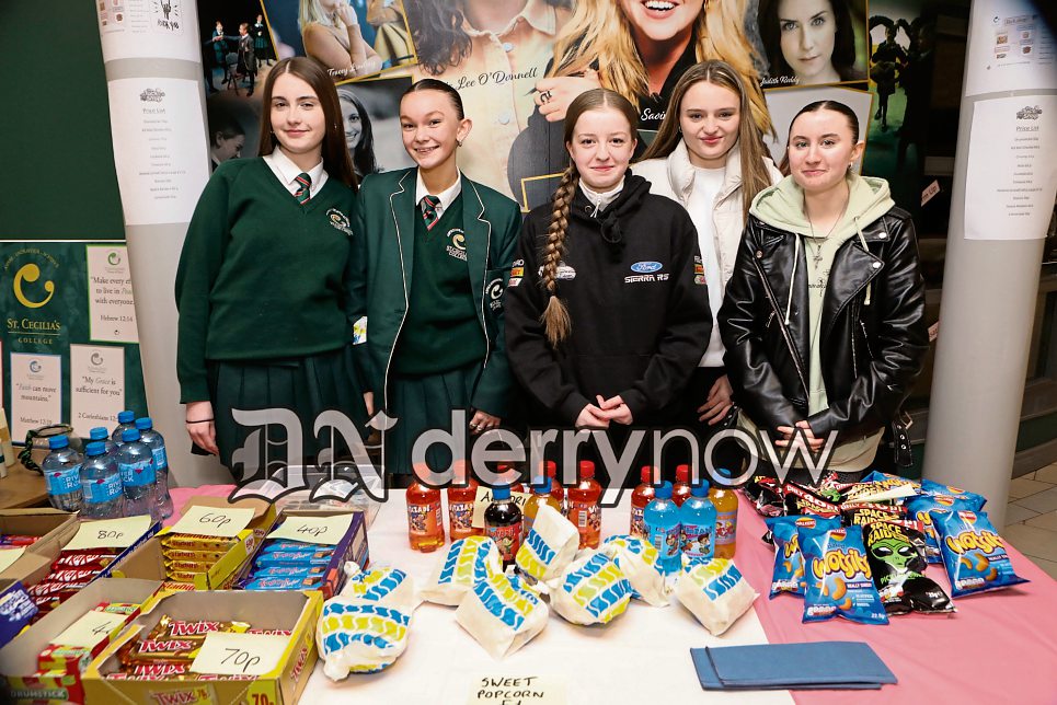 Pupils who helped out at school show, from left, are Katie O'Kane, Bronagh O'Hagan, Ava McGowan, Grace Torrens and Grace Doherty.