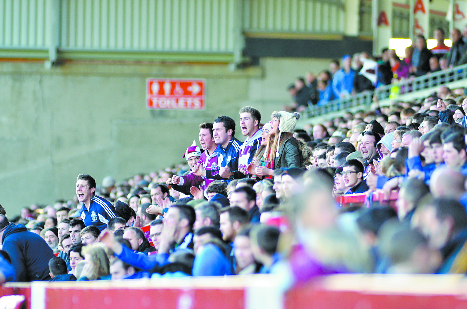 While everyone else sits these Slaughtneil supporters drive their team onwards