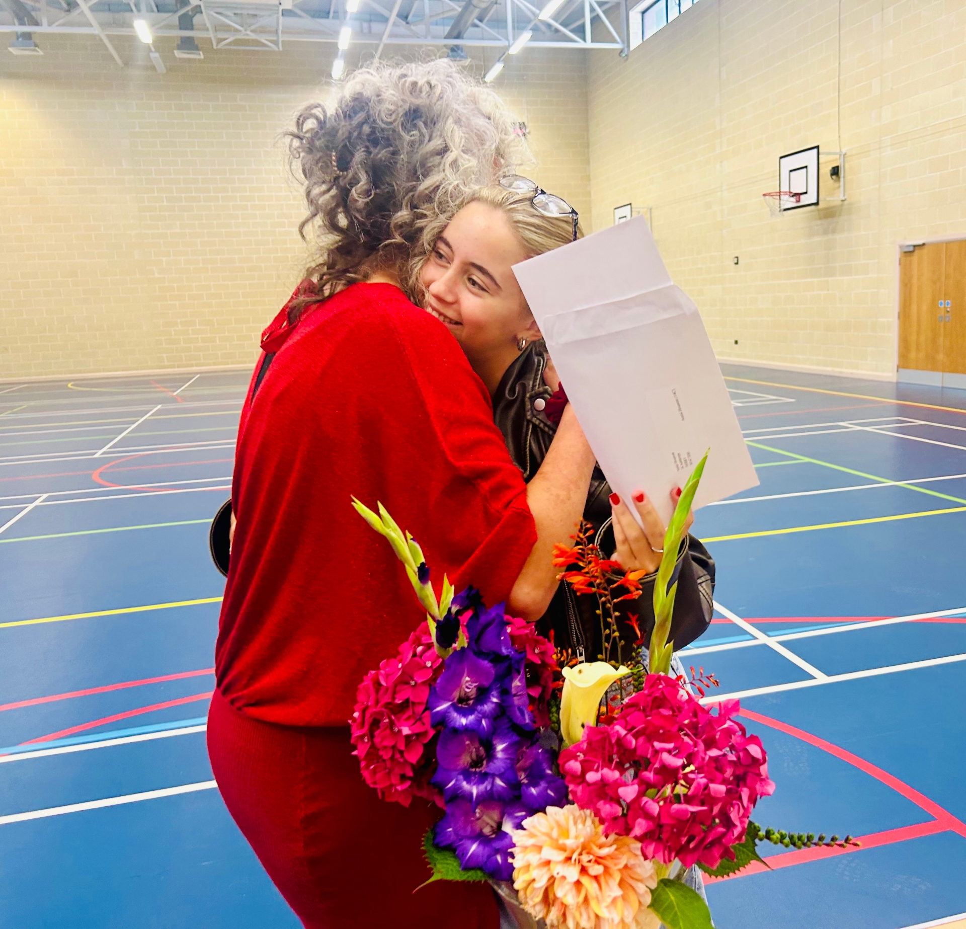 Thornhill College Principal Ms Mallett congratulates Assisi Houston on her wonderful A Level outcomes.