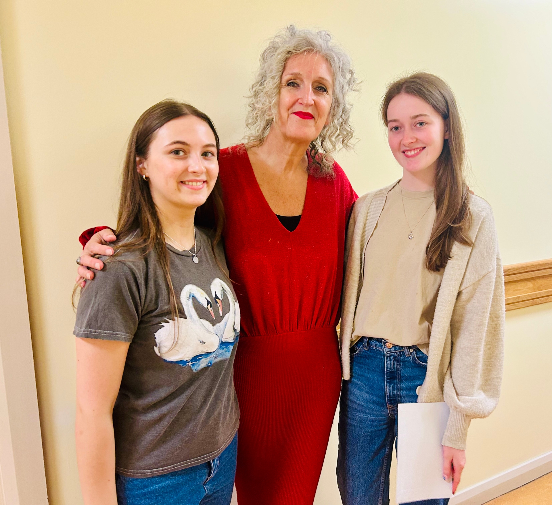 Aoibhe O Hare and Moya Gilmore celebrating with Thornhill College Principal Ms Sharon Mallett