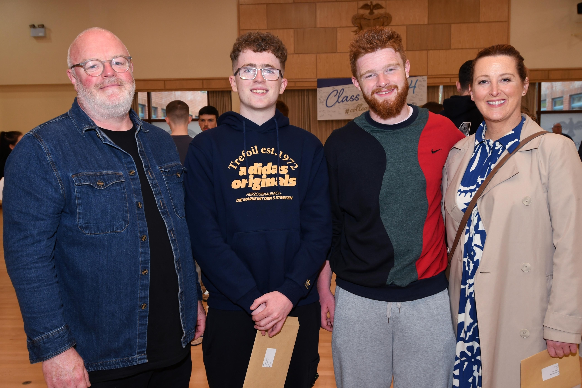 Pictured at St. Columb's College on Thursday morning were, from left, James Houston, Oran McDonnell, Ben Houston and Carie Houston.